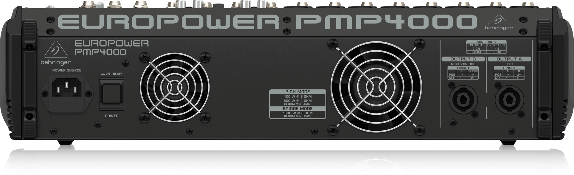 El potente PMP4000 le ofrece la opción de 2 x 800 vatios estéreo o 2 x 800 vatios en modo mono dual (salida mono con alimentación de red, 1 monitor envía señales a través de la segunda entrada con alimentación) o sonido mono puente de 1600 vatios. Ya sea que el centro de atención sea un trío folk, un discurso o una banda de synth-rock con impresionantes parches estéreo, el PMP4000 se adapta con facilidad. Esta versatilidad sonora también lo convierte en una excelente opción para iglesias, donde las voces y las grabaciones estéreo suelen compartir tiempo.