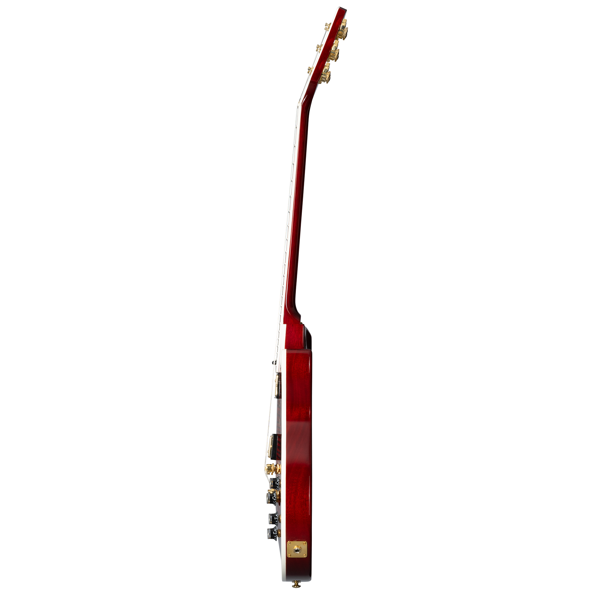 Gibson se complace en anunciar el regreso de la Les Paul Supreme. Con un conjunto con características renovadas, lo eclipsará todo y será una de las nuevas versiones más emocionantes del año. Cuenta con una bonita tapa de arce en relieve AAA en un cuerpo de caoba con alivio de peso Ultra-Modern. El mástil de caoba tiene un diapasón de ébano con un radio compuesto e inlays de madreperla de bloque dividido. El mástil tiene un talón contorneado moderno para un acceso excepcional a los trastes superiores y la pala está adornada con un llamativo nuevo inlay de madreperla inspirado en un diseño de los años 1940 que se descubrió en los archivos de Gibson. Las pastillas Burstbucker Pro y Burstbucker Pro + están combinadas con potenciómetros de tono y volumen Push/Pull para una conmutación de derivación de bobina flexible, de fase y de derivación pura. Los tres hermosos acabados están elegantemente realzados con herrajes dorados, lo que lo convierte no solo en un instrumento muy flexible y de gran sonido, sino también en una máquina del rock moderna con un aspecto excepcionalmente bonita. También se incluye una funda rígida.