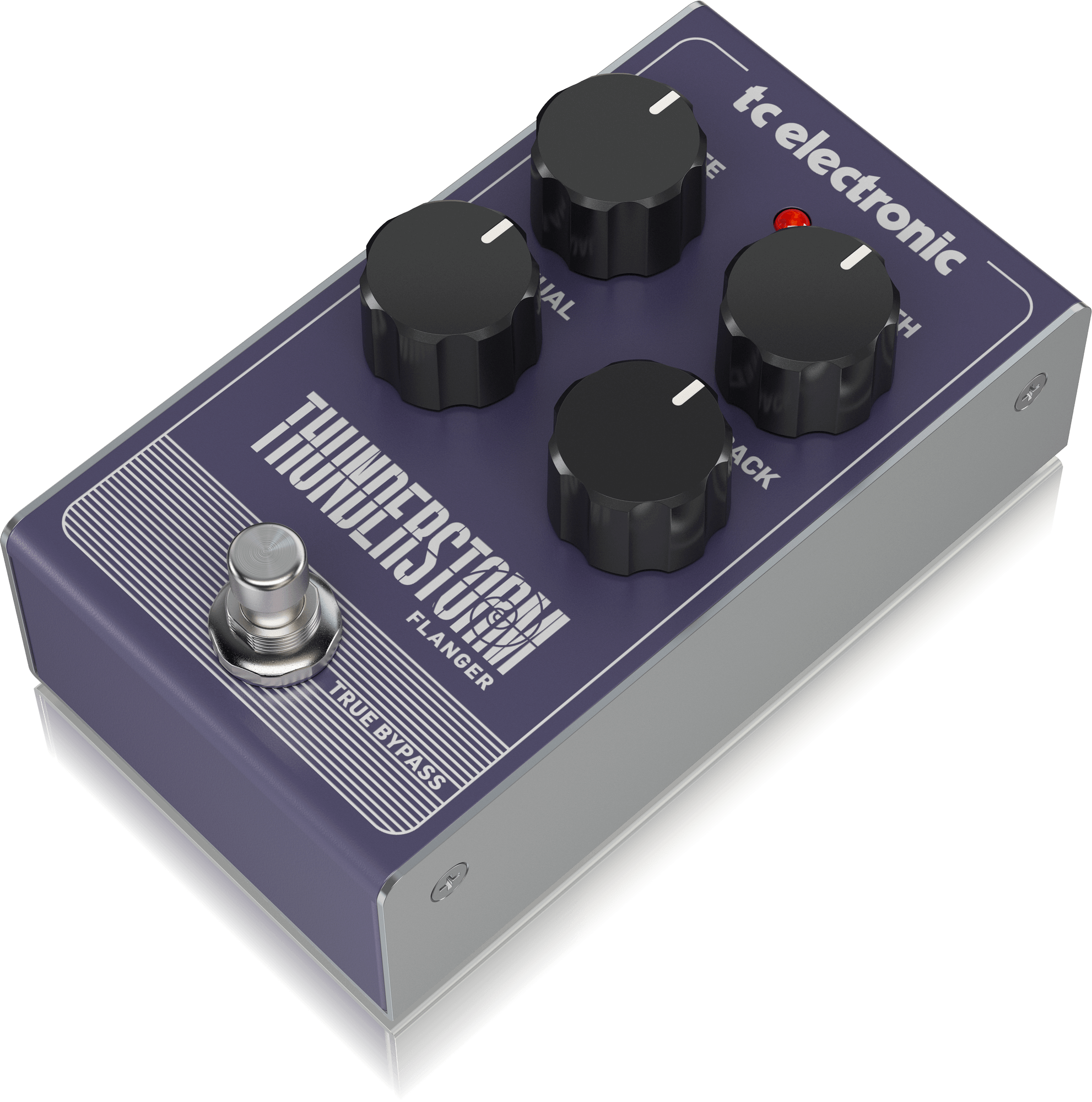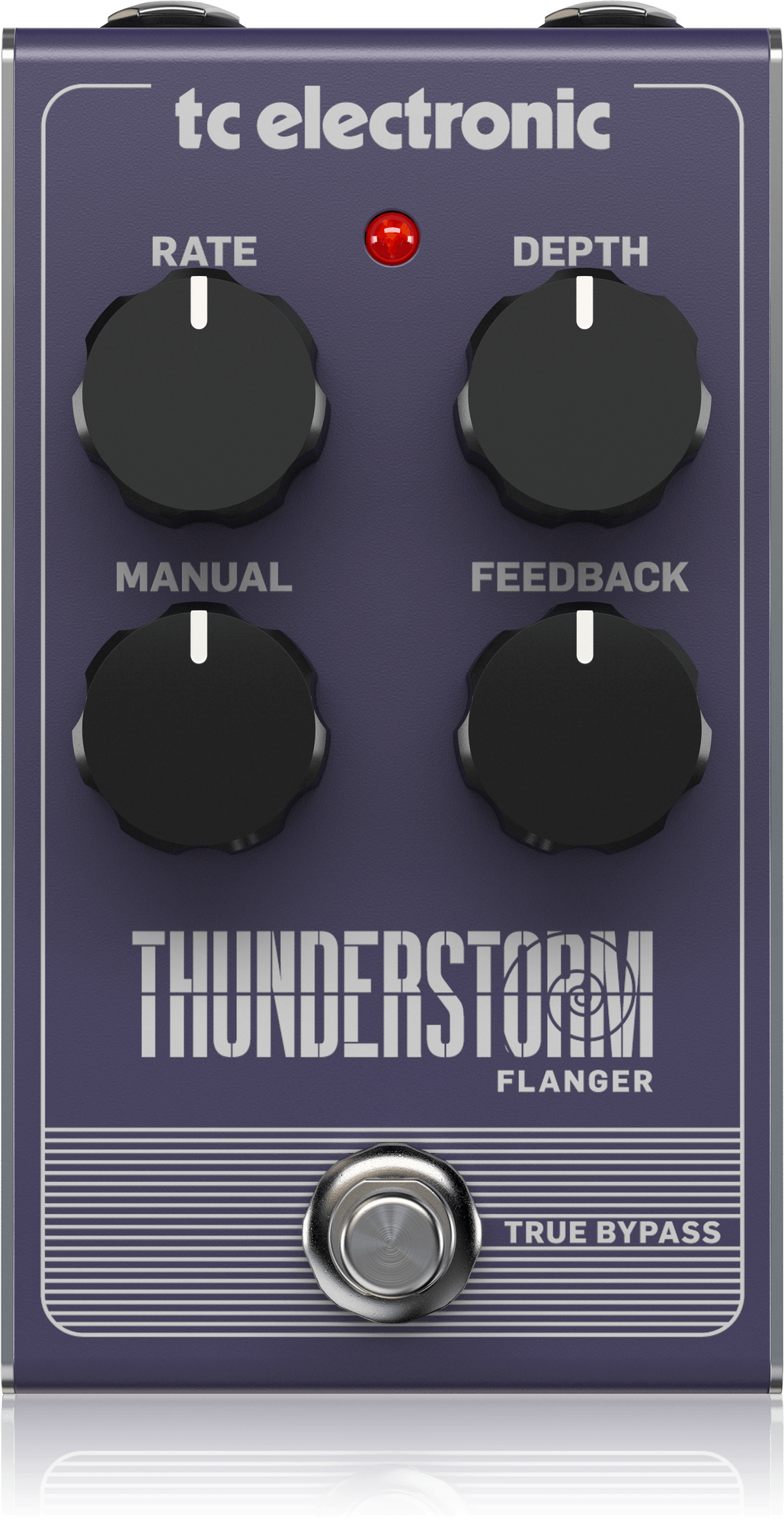 Capaz de ofrecer una amplia gama de tonos flanger clásicos, THUNDERSTORM FLANGER cuenta con un diseño de control fácil de usar que incluye: Rate, que controla la velocidad de modulación; Depth, que controla la intensidad del efecto; Manual, que controla el tiempo de retardo central del efecto; y Feedback, que define el tipo y la cantidad de resonancia. ¡Nada más fácil!